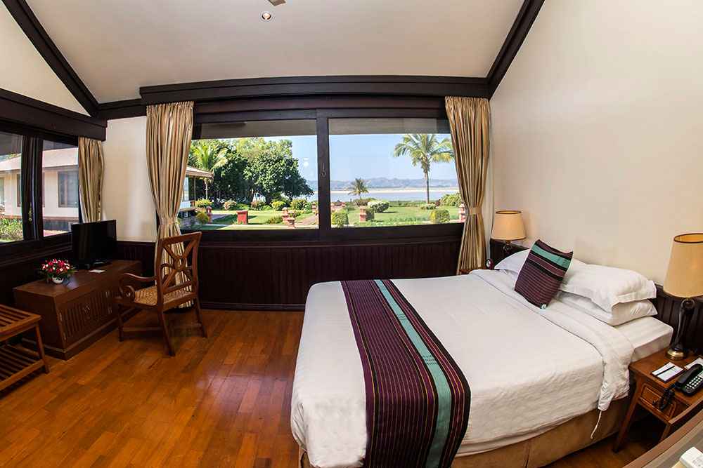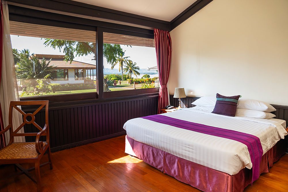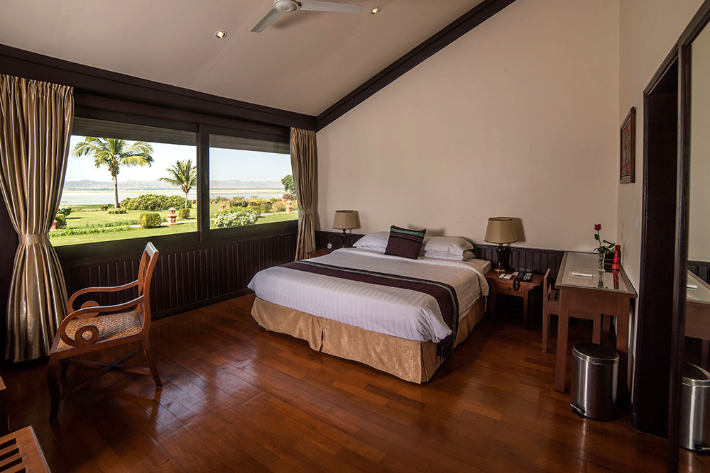 Deluxe River View Rooms boast of huge picture windows, which look out to the Irrawaddy River. Each has a private veranda where lounging chairs are placed for relaxation. Bathrooms are provided with bathtubs.